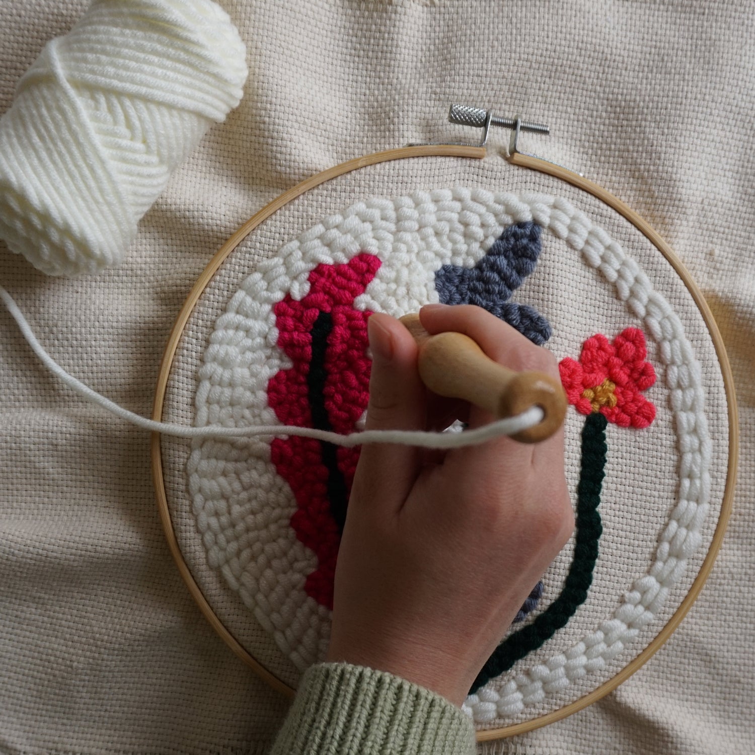Punch needle is een rustgevende én verslavend leuke hobby waarbij je met een speciale punchnaald zachte, lusjes-textuur in de stof prikt. Zo ontstaat een warm, fluffy reliëf dat perfect is voor moderne wanddecoraties, kussens en andere creatieve projecten.
